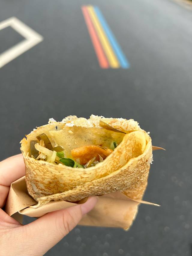 吃的喝的到处都有,我买了个素菜煎饼,很赞。喜欢里面的脆饼,好吃到停不下来。