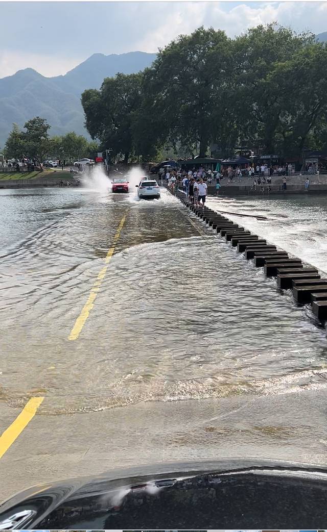 玩水的乐趣无关乎年龄吧😇;来来回回开了好几趟:从最初拉风的站在天窗外拍视频,到最后水从天而降的浑身湿透,车里也进了水(因为天窗开着,冲浪的水倒灌),然鹅此刻只有开心😃