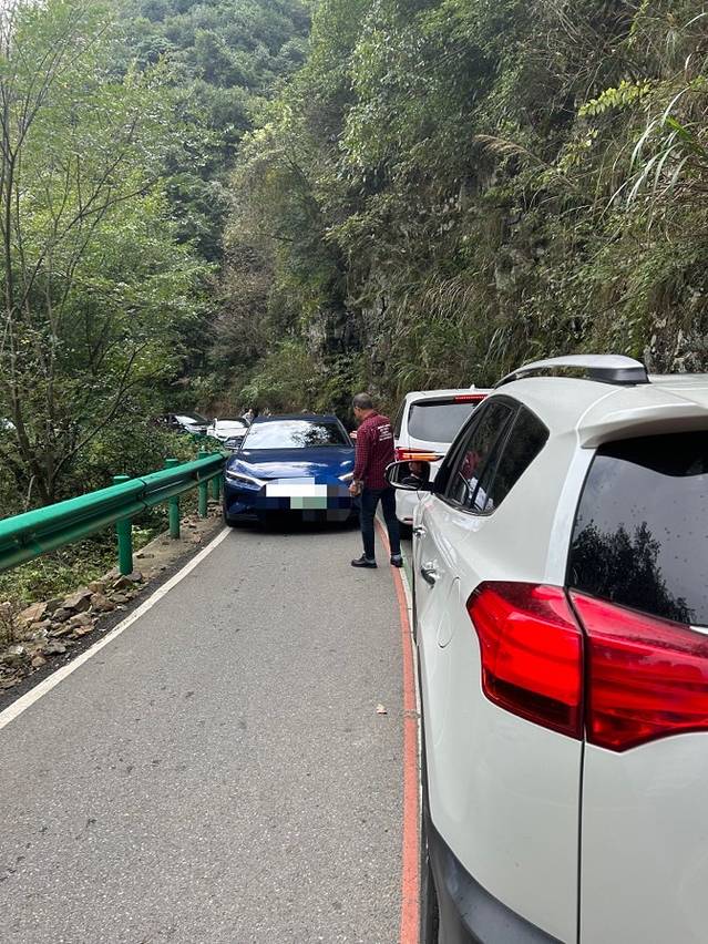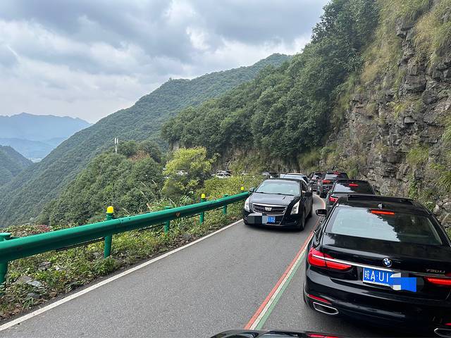 一路弯弯曲曲地下来,偶有堵车:是因为路窄且还有突出的山石,再加一点点技术吧😅。