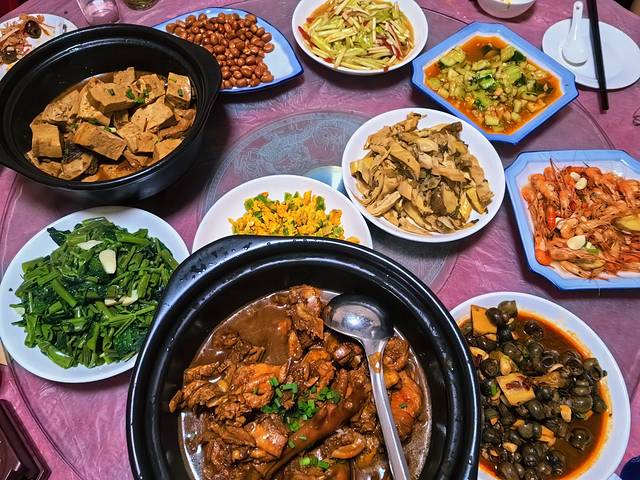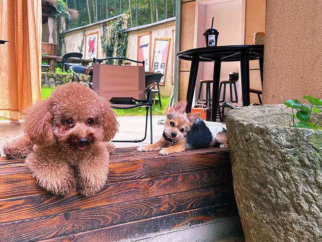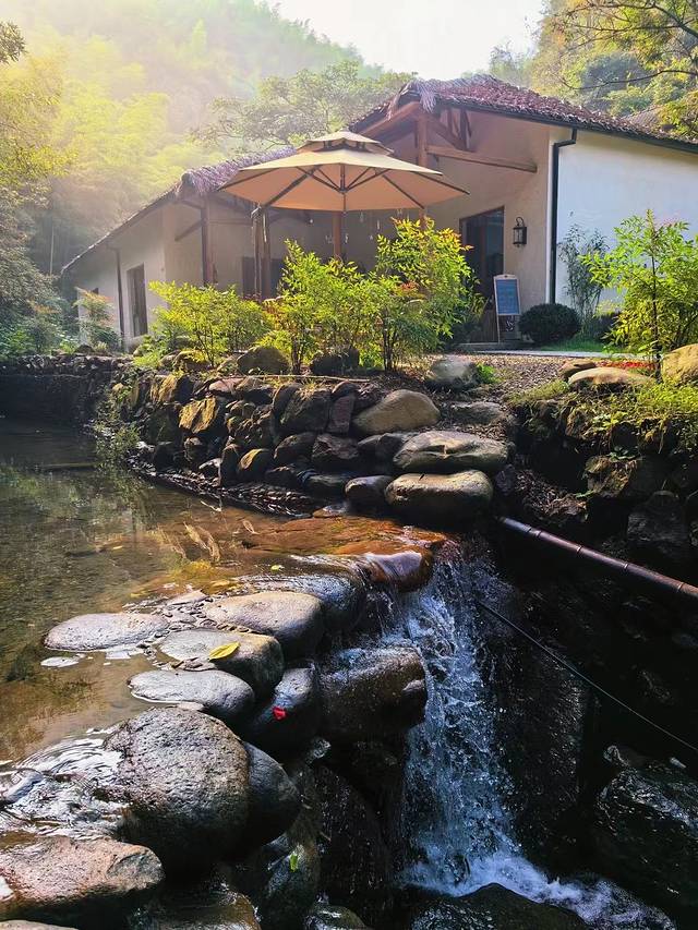 民宿拥有自己的停车场,整栋民宿一共7间房+两间套房。我们四人选择了套房,民宿很干净,前台小哥哥非常热心的帮我们搬运行李,雨天还给我们放门口摆放了伞,我们回来前还给我们开好空调。同时,这是一家宠物友好酒店,我家两只男孩子这次在这里玩儿的很尽兴。酒店的后花园里有着私人的瀑布,比起人挤人、需要购票观瀑布的景点,更喜欢自己独享这片美景!雨后水量充盈,瀑布会很壮观,泉水非常清澈,两个男孩子在泉水里畅游的很开心。不得不说,虽然隐藏在深山里,步行三分钟就有美味的农家乐啦。强烈推荐——土鸡煲,笋干炒咸肉,土鸡汤,龙虾煲,排骨煲都超级美味,价美物廉! 山中雨季多,不想出门在房间里可以打个麻将,听听雨声泉水声,喝上一壶白茶,能够有这么一片闹中取静,非常值得来打卡体验一把!