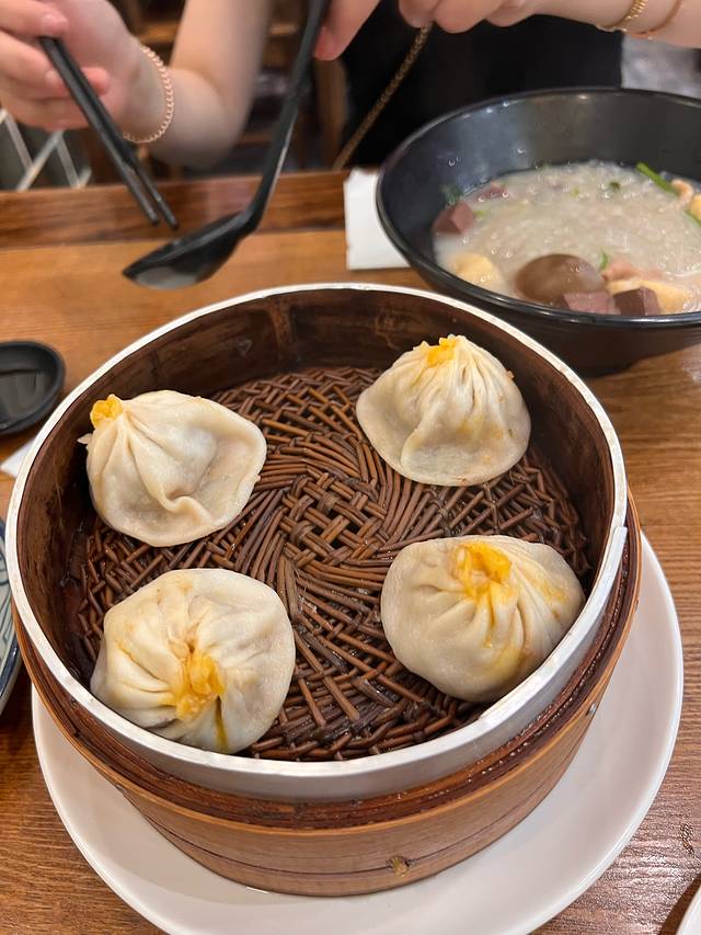 当地粉色美食蟹黄包