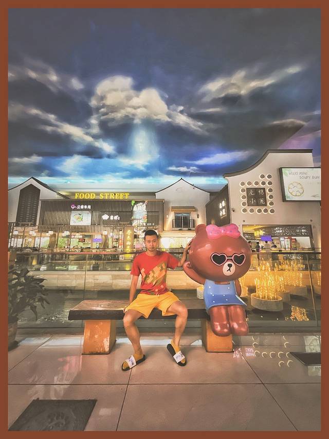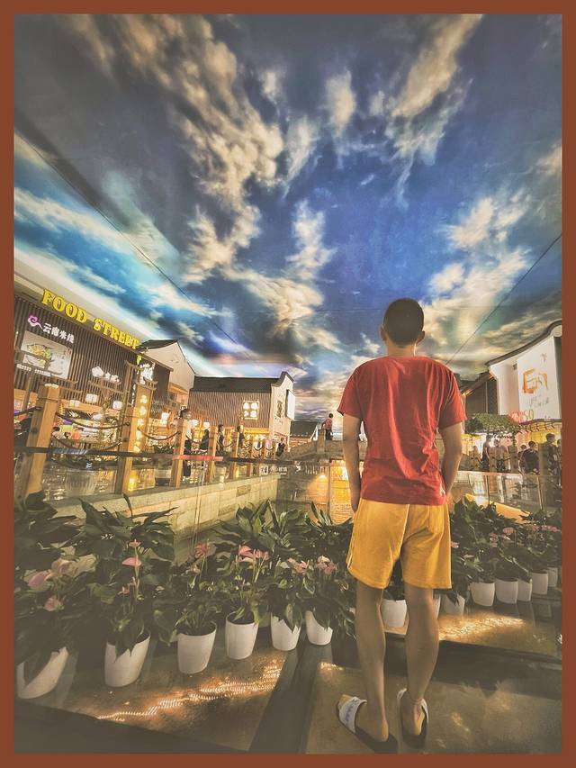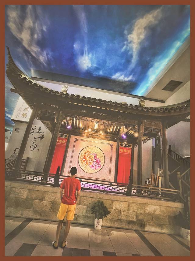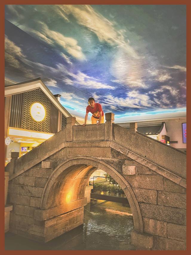 🔥服务区分两层,中庭顶端天花板像澳门威尼斯人一样,是蓝天白云的贴纸,让人在室内也有一种天高云淡的清新感。中庭正中,设计成了一条河,河上还有小桥和亭子,甚至还看到了古戏台,太适合拍照打卡啦❗️还有阿姨穿着旗袍拿着油纸伞在室内拍照,出片率绝绝子。
