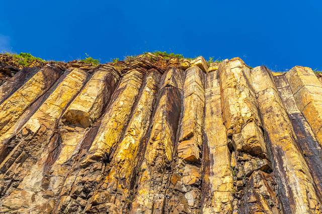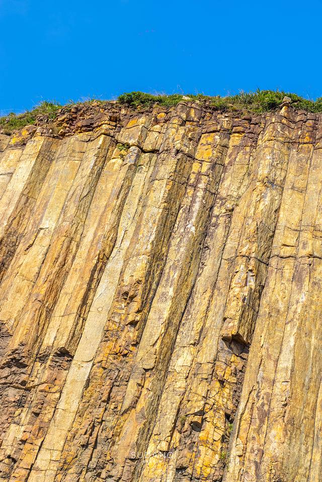 这里的山海风光十分壮阔,一览无遗的平静大海映入眼帘,奇特的六角岩柱将我的渺小身影掩藏在这片山海之间。据悉,这些六角形的岩柱群是现时所知世界上面积和体积最大的,直径平均达1.2米,高度超过100米。