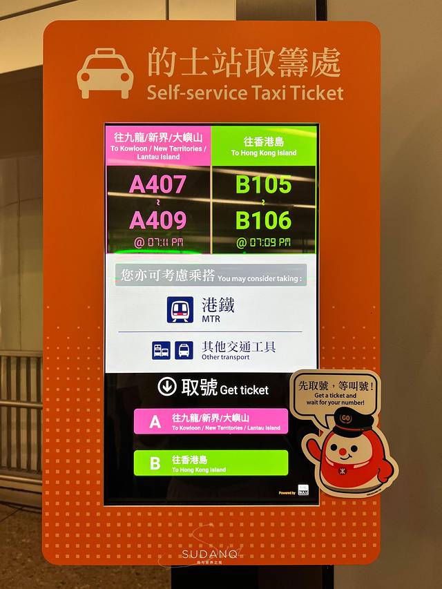 【城市交通】西九龙站有地铁可达市区各个角落,如果选择打车,记得在上的士区🚗取票号,然后根据票号有序上车。的士起步价:27港币。