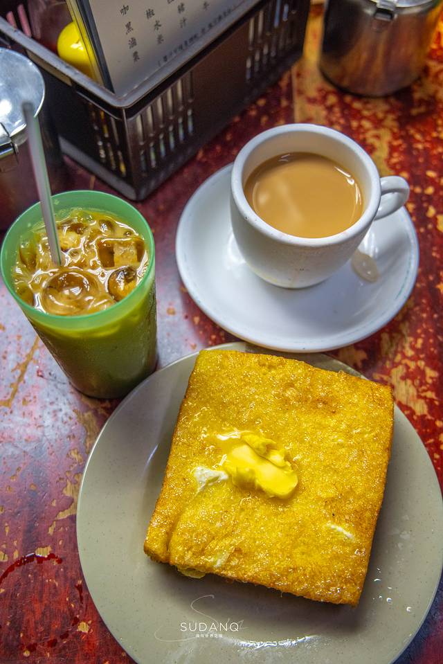 一杯柠檬冻饮,一杯丝袜奶茶,一份西多士,绝配。