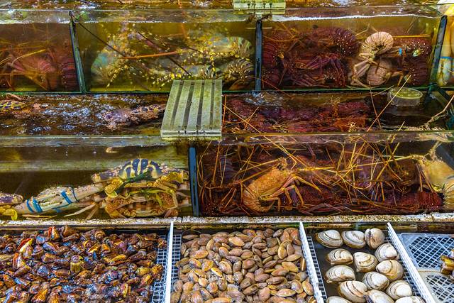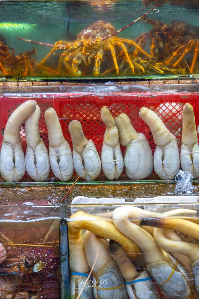 其中,全记海鲜菜馆是西贡的老字号,这里海鲜品种“极其丰富”,光龙虾就有“十几种”,石斑也“多到数不出来”,还有蟹、海胆等全都放在“室外的鱼缸里”,视觉冲击极强。