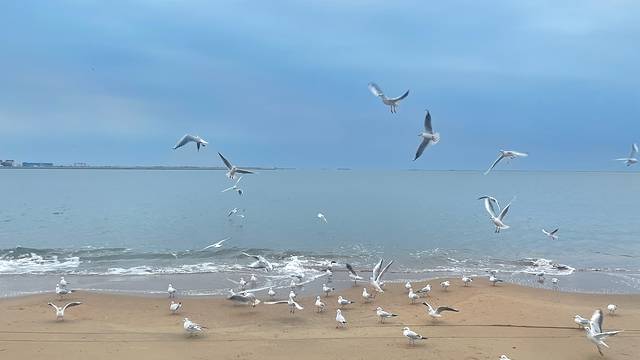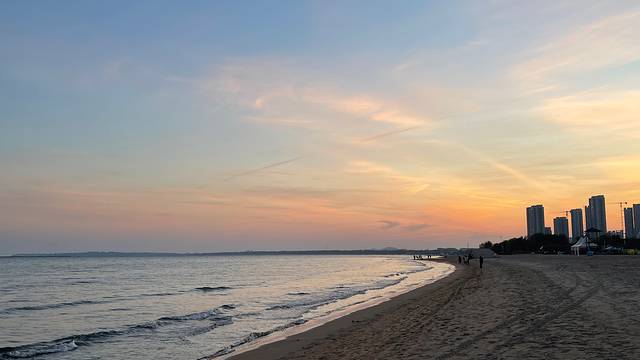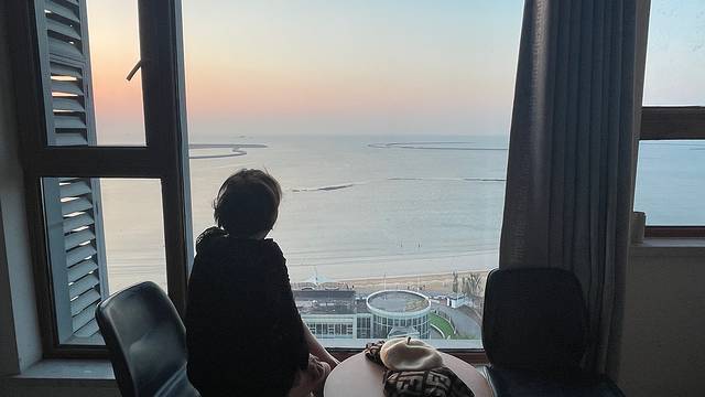 中午坐高铁两个多小时到秦皇岛,我们住的观景房,房间里就能能看到日出,海滩