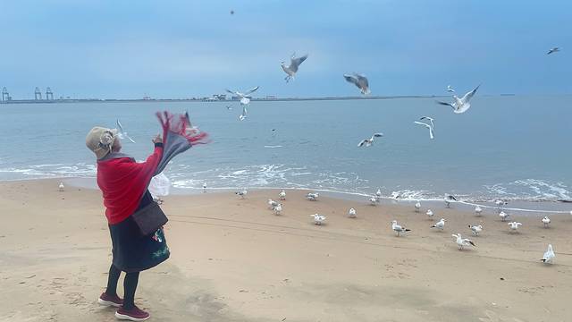 昨天吃过药,今天感觉好多了,没有发烧了,下楼到海边逛逛……