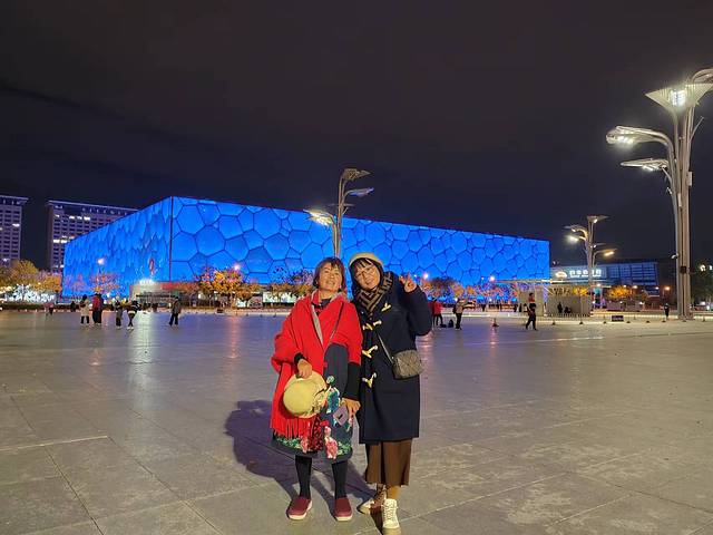 夜晚的鸟巢水立方,遇到北京降温,风很大,我们逛了一下就打车回住的地方了