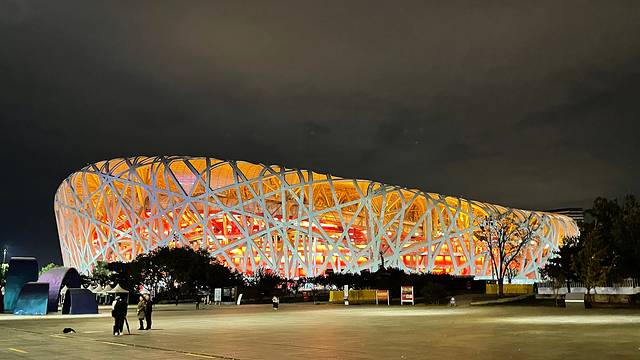 晚上在东来顺吃的铜锅涮肉,吃完饭打车到到鸟巢,夜晚的鸟巢……