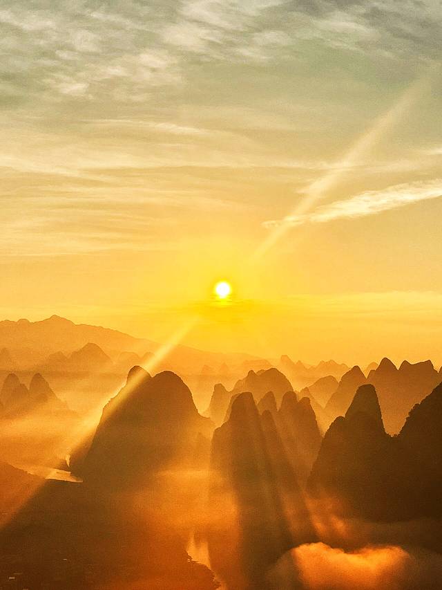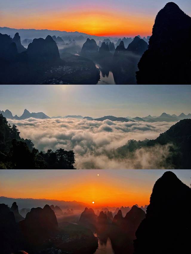 ❤️这人生总要看一次山水画中的日出吧,来阳朔旅游如果不想留遗憾,相公山日出一定要看。对山水毫无免疫力的人,也见了那么多山山水水,看到云海的那一霎那、还是有被震撼到想哭的感觉。