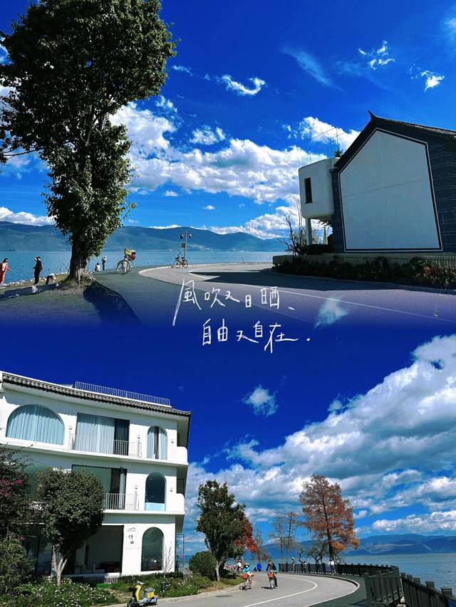 3⃣️才村:沿海湿地生态长廊很美,可看骑行🚴散步🚶,这里也有很多民宿,比起古城会安静一些,出门步行就能到洱海边,每天在大草坪上散步坐在长椅上晒太阳是一件很舒服的事情,也不要错过早起看海边的日出🌅很治愈。