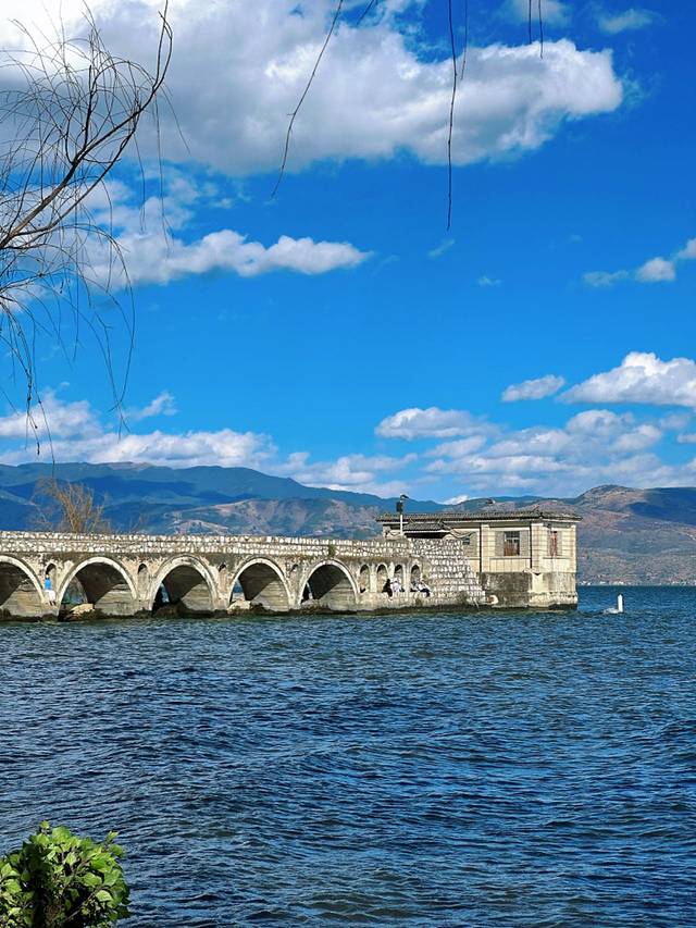 6⃣️廊桥:是一座灌溉旧桥,有十几个半圆桥洞一直延伸到洱海里。
