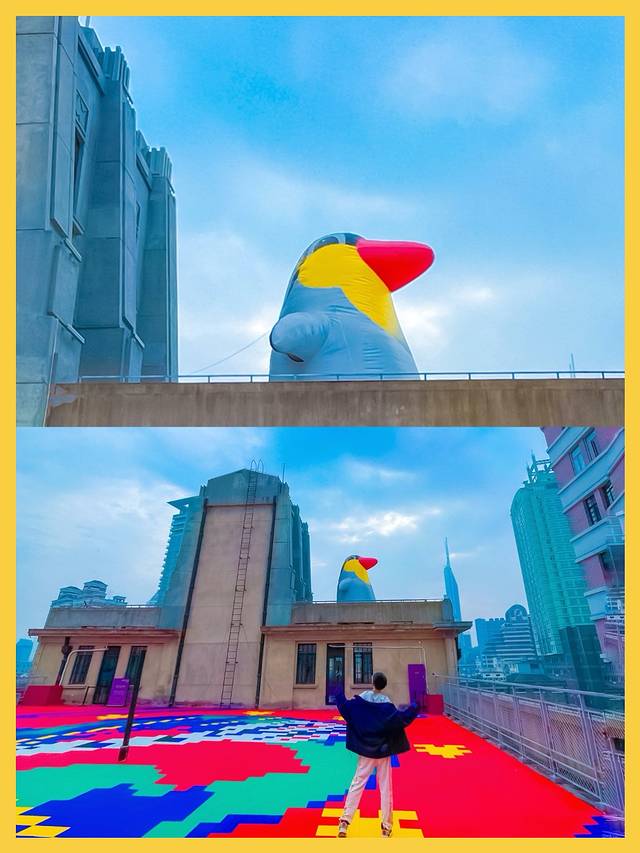 🎨这令人惊艳的绝美多巴胺天台远在我打车回家路过大悦城的时候远远的就在高架上看到了,可以说那个大大的企鹅是真的很吸引我,于是我找到了这里,一顿猛拍,无人大片随心而出,开心🥳