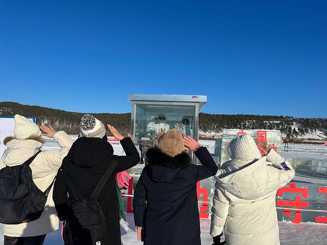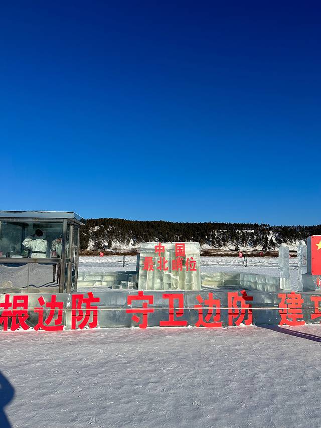 那个最北点在陆地上,而冬季的最北哨所在黑龙江上的中国部分,两个士兵面朝俄罗斯,当我们下去参观的时候,如果我们和他们敬礼,他们也会回敬礼,当我们离开的时候,他们又面朝俄罗斯了,也许在日复一日的守卫过程中,我们的到来对他们来说也是一种乐趣