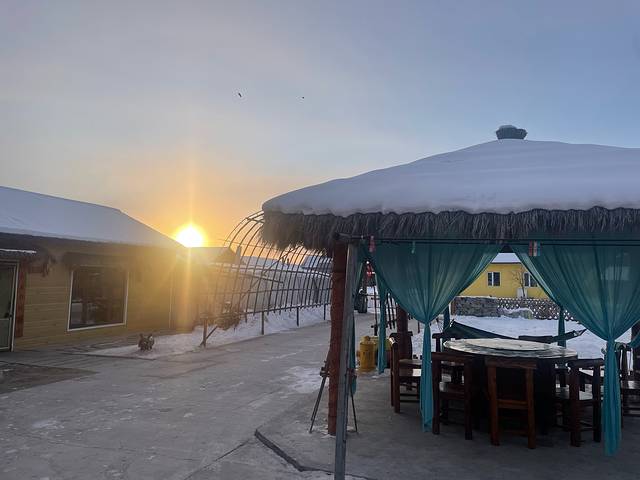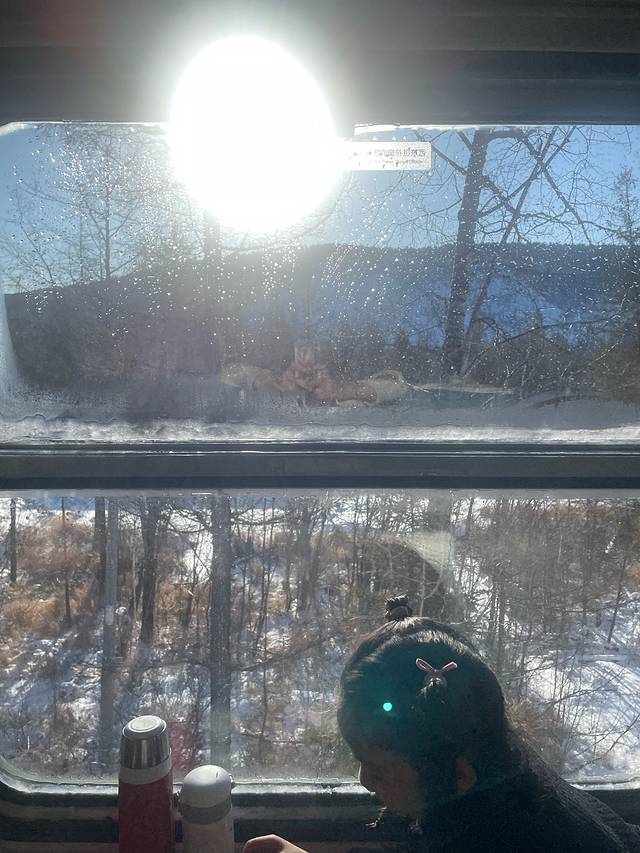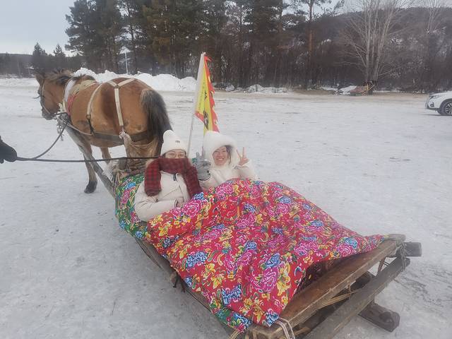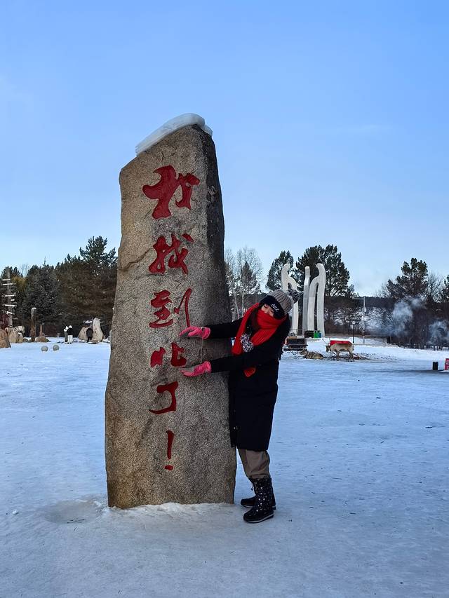 早上出发去坐马拉爬犁,温度零下20左右,爬犁上有花棉袄,看着应该不冷吧,但是这应该是最冷的项目,记得在背上贴暖宝宝,多贴几个,鞋子也贴上暖鞋贴,要足够保暖,因为它差不多要走45分钟在外面,紧贴冰冷的爬犁,中途下车会有几个景点,105