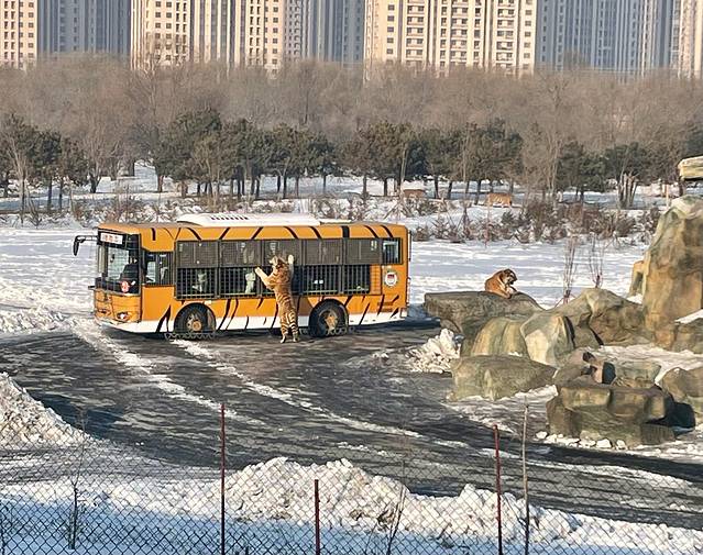 把行李免费寄存到中央大街的邮储银行,去吃了杀猪菜,感觉吃不惯42,小分队抢到了冰雪大世界vip,我独自去看了东北虎园林看了东北虎,本来觉得下午了应该老虎吃饱啦,事实发现还是会有几只老虎爱吃,早知道坐惊险车了,可以自己喂肉,也可以看别人喂肉,近距离接触大猫!可惜我坐了普通车,真可惜!105,车开过一圈园区,也有步行通道,山中之王的威名不是白来的,当你近距离靠近时,天生的压制就会出现,还是会恐惧的,不过大猫果然是猫,和我家面包的行为不能说一模一样吧,也非常可爱!
