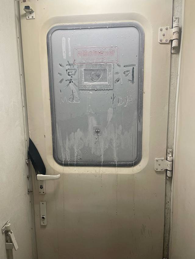 凌晨四点多去车厢连接处看霜,可能今年暖冬,霜不太明显