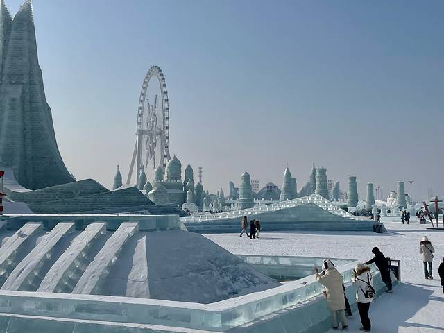 走去做地铁去冰雪大世界,在门口买了个鞋钉15,钉鞋别买,没啥多大用处,我们是想万一去漠河能用到。冰雪大世界畅想票800,进门本来想走到摩天轮先排一次队,结果发现根本不找不到队尾,就放弃了,路上遇到一个说这时候有个黄牛给我卖黄牛票我都买,后来计划先看好地图在玩,最近的项目都是要收费的,滑雪教练2人150,卡丁车128一位5分钟,我们都嫌贵没去,很多项目都要收费除了各种秀,大滑梯,摩天轮,大雪圈。所以可玩项目并不多。我们就先去玩了大雪圈,和大滑梯差不多但是不用排队,真的性价比绝对比大滑梯值,要是大滑梯得排3.4个小时还不如玩雪圈,大雪圈下来后马上去上大滑梯,比雪圈长一点,后半段陡一点,而且没有185的帅哥!!下来再走走拍拍,累了冷了去咖啡屋坐一下,小马扎很有用啊,起码有地坐!!吃了关东煮和热豆乳取暖40,冰糖葫芦吃了15,看太阳16点40多下山,准备在夕阳的时候上摩天轮,差不多16点过,就有一些灯局部开了,上摩天轮差不多20分钟,我们能看到地面的灯是一部分一部分亮起来的,差不多下来只有亮了园区的一半,但是那时候夕阳晕染的天空很漂亮,和灯光交相呼应,不比夜景单一差!!然后去看5点的哈冰秀,坐在前面和廊道会有互动,就是很多外国人的表演和杂技表演,出来之后灯全亮了,又拍了一会照片,就去看露天蹦野迪,全是人,根本进不去,在外围感受亮一下气氛,一天的行程就结束啦!题外话,有好几个秀是有时间的,vip不用排队,但也要安排一下时间,网红机位拍照需要排队,从下午开始天气逐渐变冷,尤其是太阳快下山了,要提前做好保暖,该添的衣服和暖宝宝全用上,发热鞋垫很有用。