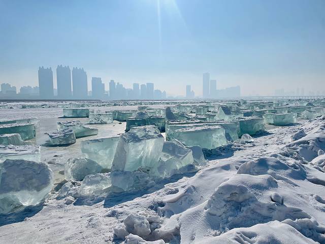 本来我们要去网上看到的钻石海,没想到松花江索道上往下看,在附近就有一堆堆着的废冰,这个小钻石海可能没人知道,居然一个人都没有,特别出片,想知道在哪里,坐索道看吧!在太阳岛一侧