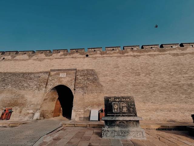 当我真的站在它的脚下,才真正感受到这座守卫着古城的城墙时何等的让人敬畏。淡淡的有些发青的墙砖,描绘着连绵不绝的城墙。由于雨水风霜的洗礼,有些墙砖已经凹凸不平了,但仍依旧让人震撼这个建造。落日时古城外还有许多散步和拍照的人们,仿佛时空发生的碰撞似得。
