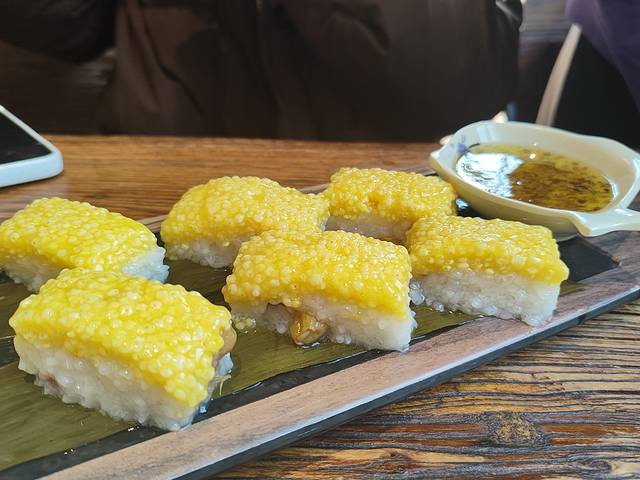 沁州黄米凉糕:黄米与糯米制成的一种甜品,吃起来软软糯糯的,蘸桂花蜜味道会更好~