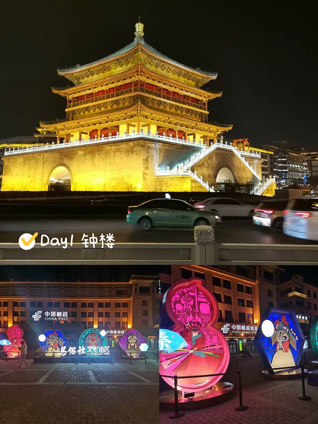 高铁抵达西安,到那边也已经是傍晚了,我入住的酒店在钟楼附近,可以步行到钟楼,晚上钟楼那边亮灯了好多人拍,只能说算是个打卡点,没啥太多可玩的,所以我安排在了第一天晚上。