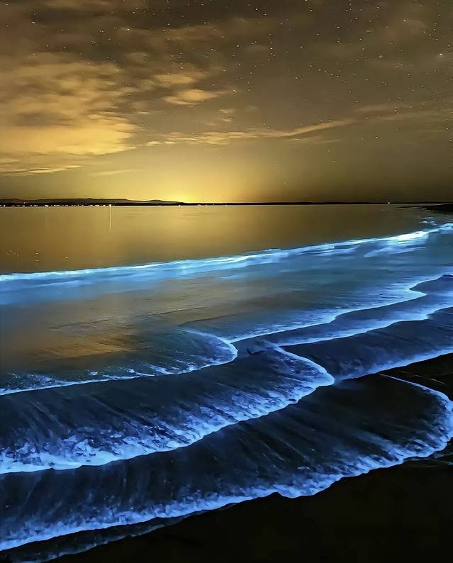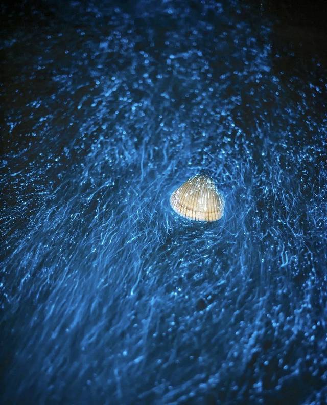 明月高悬的凌晨涨潮时分,正是“蓝眼泪”的高光时刻。