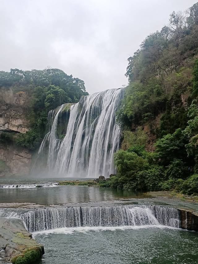 第一站先去的黄果树大瀑布,观光车到站点后步行几百米乘坐大扶梯往下,这个时间瀑布水量还不大,不是最佳的观赏时节。人真的好多,水帘洞限流了,看着密集的人群我们果断选择放弃,奔赴下一站天星桥。