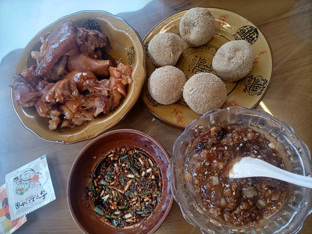 中午点了豆腐丸子,猪蹄,糕粑稀饭,都还挺好吃😄