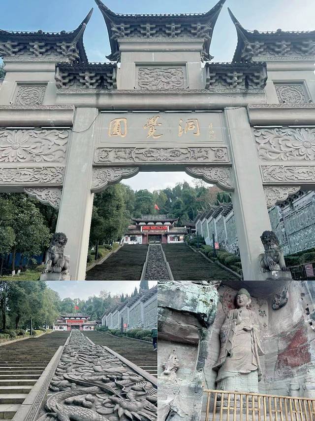 游玩卧佛院,自然不能错过圆觉洞。这里是国家AAAA级旅游景区,也是全国重点文物保护单位。圆觉洞的摩崖造像和石窟艺术让我叹为观止。北岩的“一佛二观音”造像壮观,南岩的五代造像题材多样,如“十六罗汉”、“毗沙门天王”、“地狱经变龛”等,造像小巧玲珑,衣纹细密,线条流畅。走进圆觉洞,仿佛漫步在千年前的时光长廊中,感受着古人笃定的信仰和勤劳的智慧。
