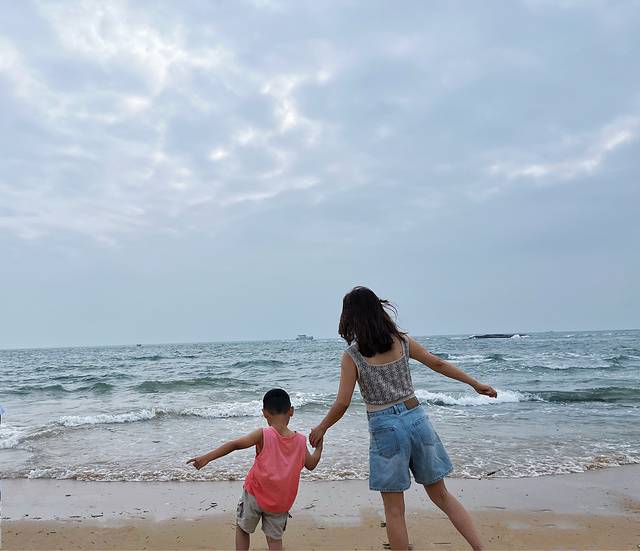 打车到达小麦岛,要走很长的路才能到海边,要是在西安小锦鲤肯定要抱抱,但今天很给力,出来这一趟仿佛一夜长大,小孩子还是要多带出去走走哇。