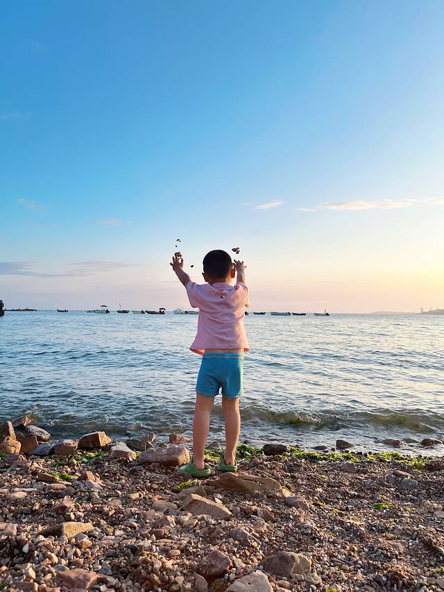 因为带着娃,所以没有去找石老人雕像,打车下来后就近歇息,小朋友又是挖呀挖,我坐海边吹风,很惬意。