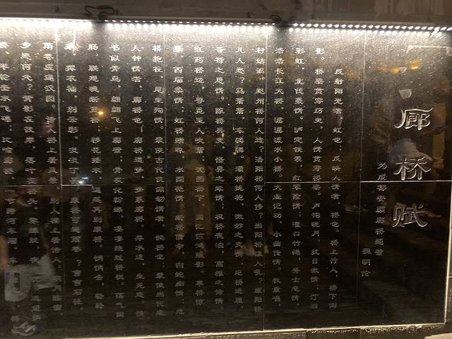 有巴蜀鬼才之称的魏明伦先生撰写了“廊桥赋”于安顺廊桥的桥头,又有“天上鹊桥地上廊桥”一说,因此廊桥又被认为是爱情的象征,再加上合江亭也被象征为爱情的象征,因此这里也是许多恋人的聚集地。