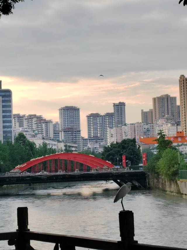 这座桥叫做万里桥,在成都人口中叫老南门大桥,也是杜甫的诗中“门泊东吴万里船”的地方,在唐朝的时候,这个地方是主要的船码头。周边山谷聚集非常繁华,随着时代的迁移码头也主要南迁慢慢南迁到了九堰桥附近,后来为了纪念在桥头修建了万里号,就是现在这个像船一样的建筑,上面有老牌的餐厅,性价比还比较高。