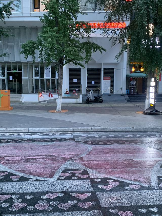 爱心斑马线和红绿灯本来是在一起的,但后来因为爱情斑马线许多人在那拍照,所以堵塞了交通,因此移了一段距离,但是合江亭的红绿灯也是🧡的