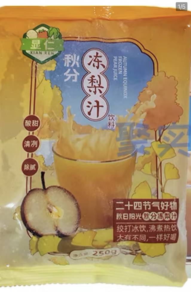 这个冻梨汁 特别浓,感觉就是冻梨果肉,感觉夜市卖冻梨汁的都是这种稀释的。直接喝很甜 但是有果肉感。