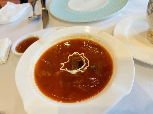 俄罗斯红菜汤 正常水准,我喝着感觉和山姆卖的百山祖罗宋汤味道差不多,感觉没必要特意尝试,喜欢酸口西红柿味道的可以点来尝尝