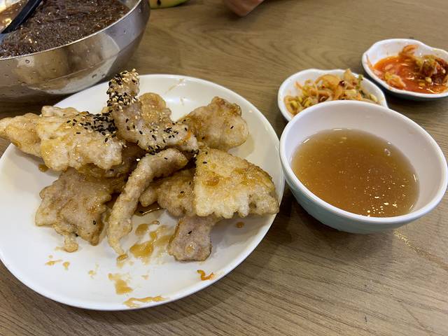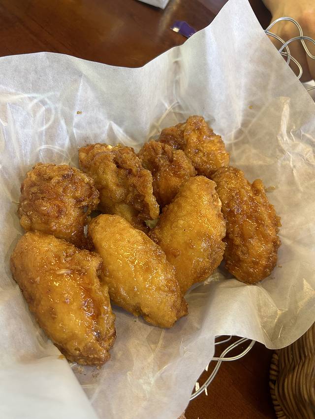 点了酱油炸鸡 半份也有八个,汁水比较丰富 外壳炸的脆,纠结了半天选什么味道,问店员说酱油不甜,但实际也是甜的… 但胜在口感不错 外皮即便刷了酱 也很酥脆 咬开也有锁住汁水