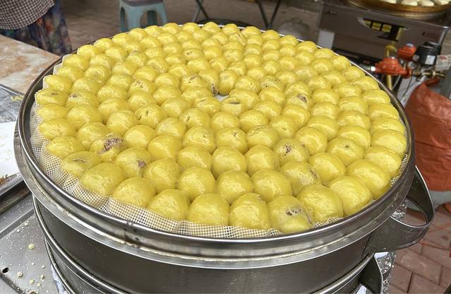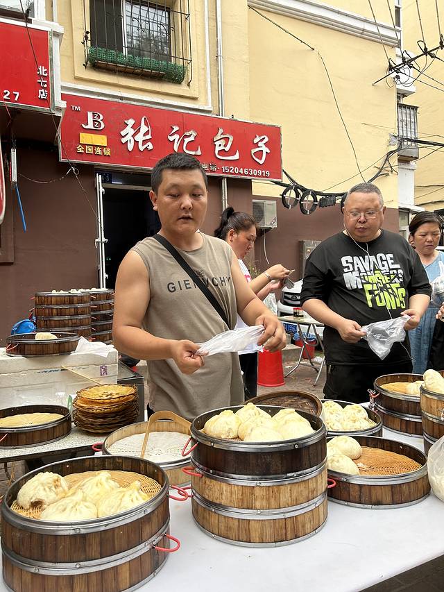 牛肉包子 茄子包子 一共三块,很便宜而且牛肉馅儿很香很好吃,茄子包子馅儿像炒茄子的菜 调味儿好,感觉当地人也在买,生意太好,问了好多遍老板什么馅儿都没空回复,当地人说还有酸菜、白菜,豇豆这些馅儿,我们走到这里的时候七点多了 很多馅儿都没了。但味道和性价比绝对没得说,路过可以尝尝!