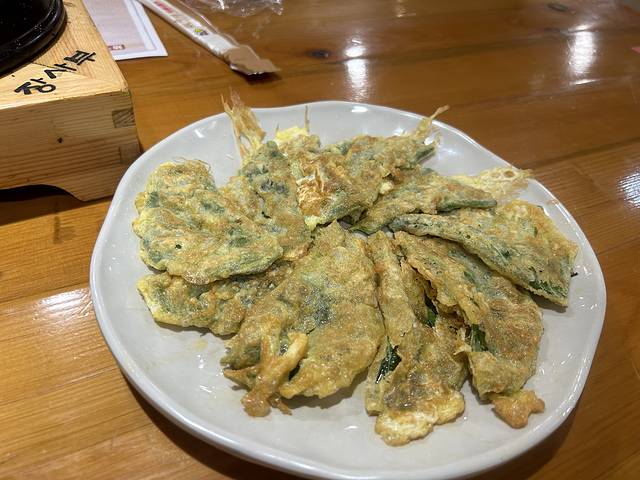 苏子叶饼 苏子叶里面夹肉馅,外面裹一层鸡蛋液,还挺好吃的(稍微有点油),可以尝试~