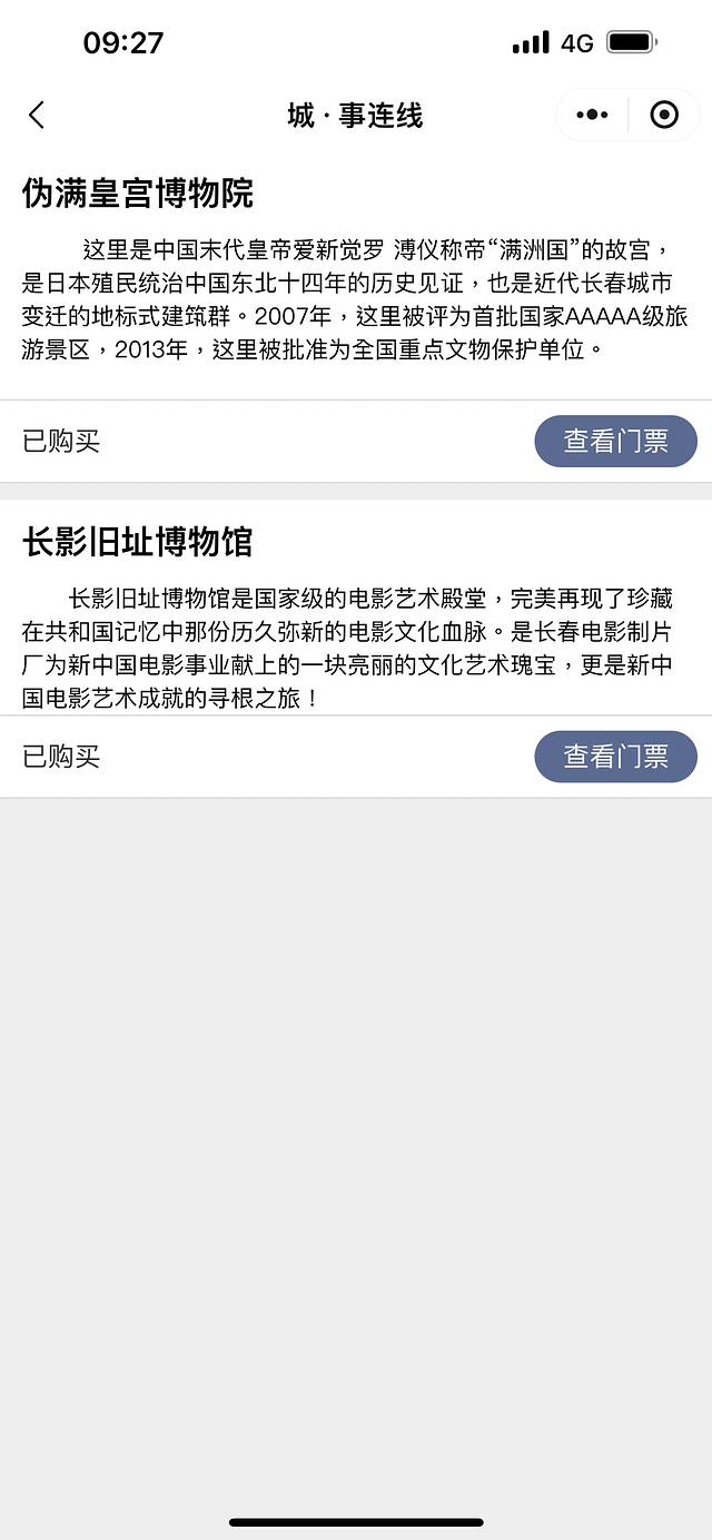 长春的景点可以在wx 小程序搜索“城事联票” 长影、伪满皇宫、莲花岛 任意选两个 可以一起买 很方便!