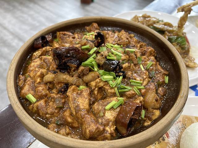 家常靠老豆腐 是卤水豆腐 感觉是最古老的那种口味 下面砂锅一直烧着火(估计冬天很保暖)