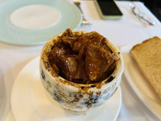 罐闷羊肉 很好吃,和浓的红烩味儿 羊肉软而不烂,筋头巴脑也很容易入口咬断 能吃出用的西餐香料很足 口味我个人挺喜欢的,红烩汁最后收的很稠 最后蘸面包也可以 推荐推荐!!