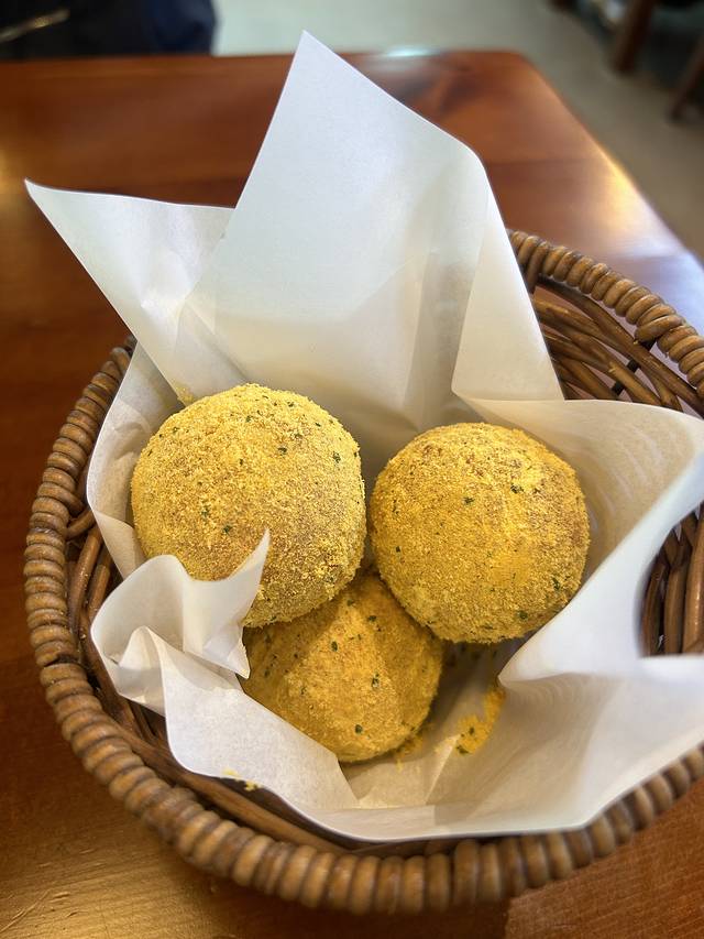 奶酪芝士球 主要是撒的料粉好吃,刚炸出来的奶酪球 可以拉丝 可以点小份3个还是挺人性化的