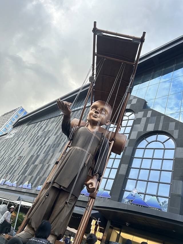 这有山里面是装修成山洞形式,外面有个小和尚,打车的司机师傅说是按照重庆洪崖洞的风格装修的,可以转转