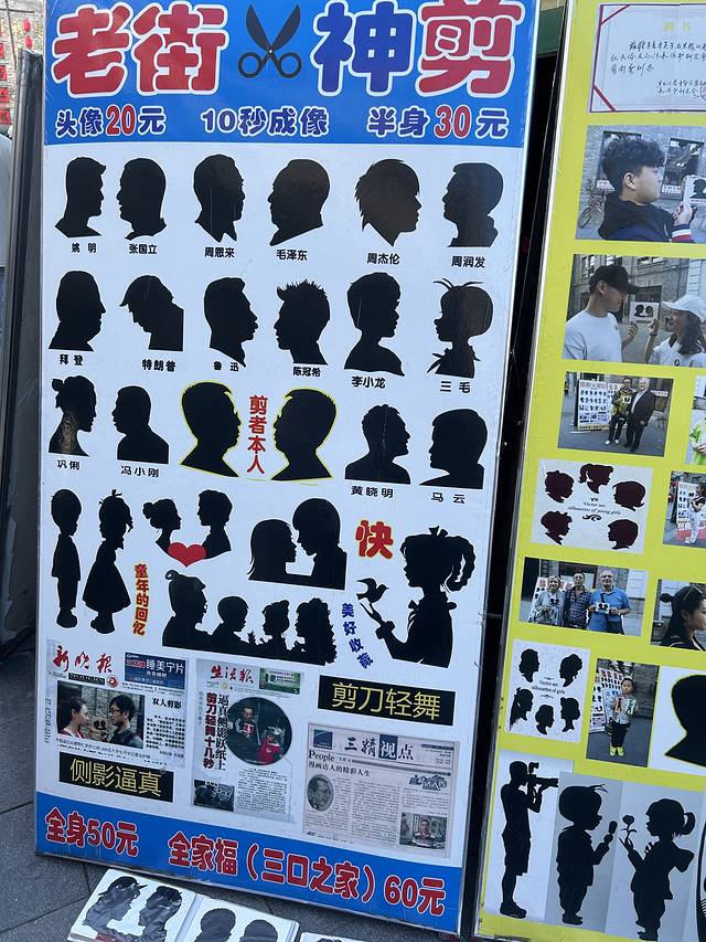 这个剪侧影的老爷爷真的很厉害 看着他给两个人剪侧脸 很有特色 眼镜儿和头发丝都能剪出来👍