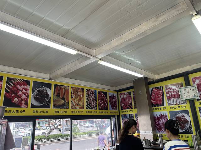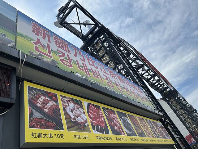 就在市场大门左侧,看到是新疆人开的店,中午正在切肉穿串儿就说尝尝,肉特别嫩 烤之前蘸一下新疆那种黄色的调料,我们等串儿的时候一个新疆人来点了三四十串羊肉串