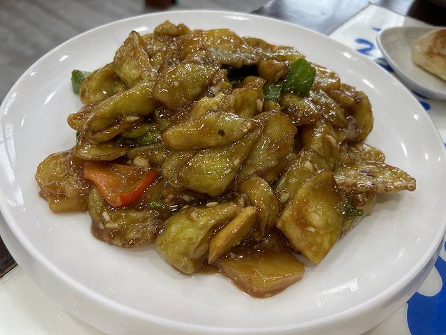 地三鲜 茄子特别多,非常好吃 而且入味,土豆也软烂但有焦香味,关键是 一般地三鲜都是土豆多茄子少,他家是真的完全很多的茄子 而且没有夹生情况,很软烂 炸锅但不油!对爱吃茄子的人来说简直是必点菜!