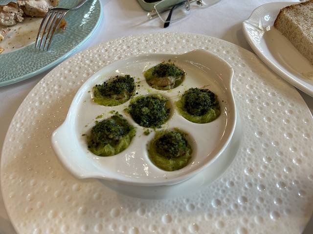 伏特加烈焰蜗牛,蜗牛滑溜溜的,下面是土豆泥,上面绿色的调味不知道是什么没什么味道,嗯不太吃得惯属于尝鲜一次就可以的菜。